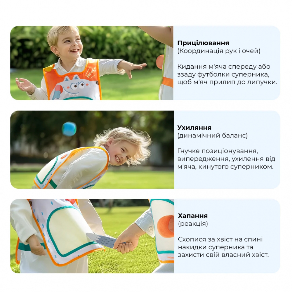 • Активна розвага 3 в 1: Кидайте, ухиляйтеся та хапайте м’ячі – кілька ігор в одній! Ідеально підходить для покращення координації та рефлексів.