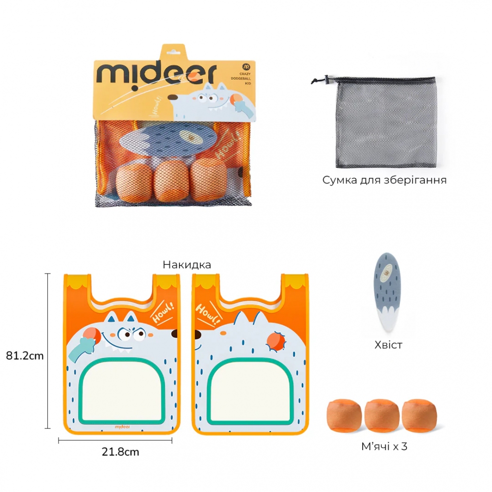 В наборі: Накидка з липучками, 3 м’ячі, фетровий хвіст, сумка для зберігання.