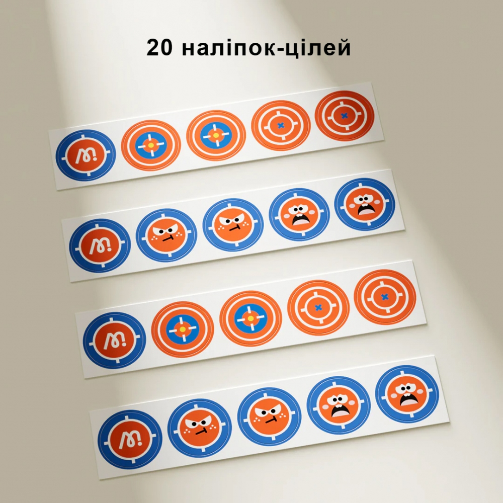 В наборі: 3 дротики, 20 наліпок-цілей.