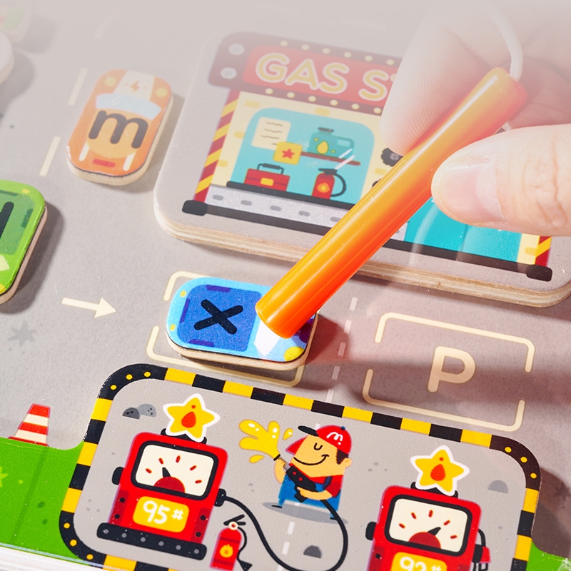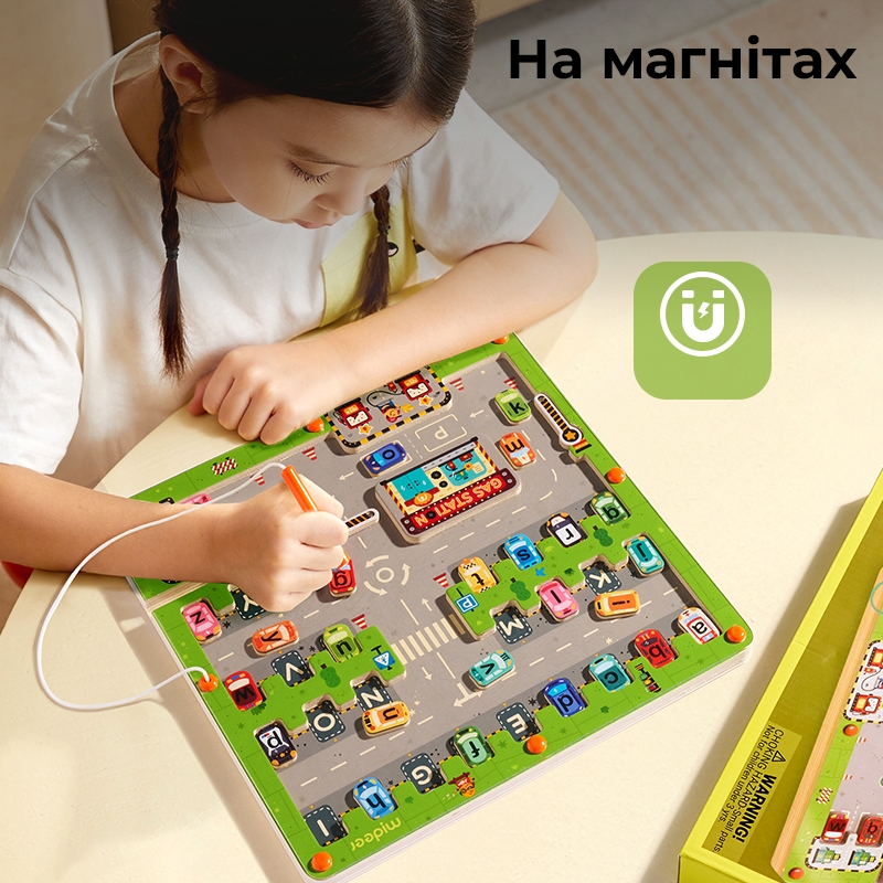 - Покращує координацію рук і очей: переміщення магнітних машинок лабіринтом допомагає розвивати координацію рук і очей та непомітно покращує контроль олівця, закладаючи основу для навичок письма.