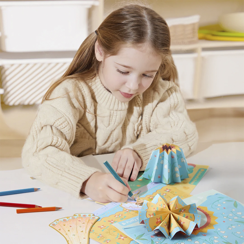 Після розфарбовування картки можна легко скласти в тривимірні фігурки завдяки попередньо вирізаним лініям, які забезпечують довговічність і легкість у використанні.